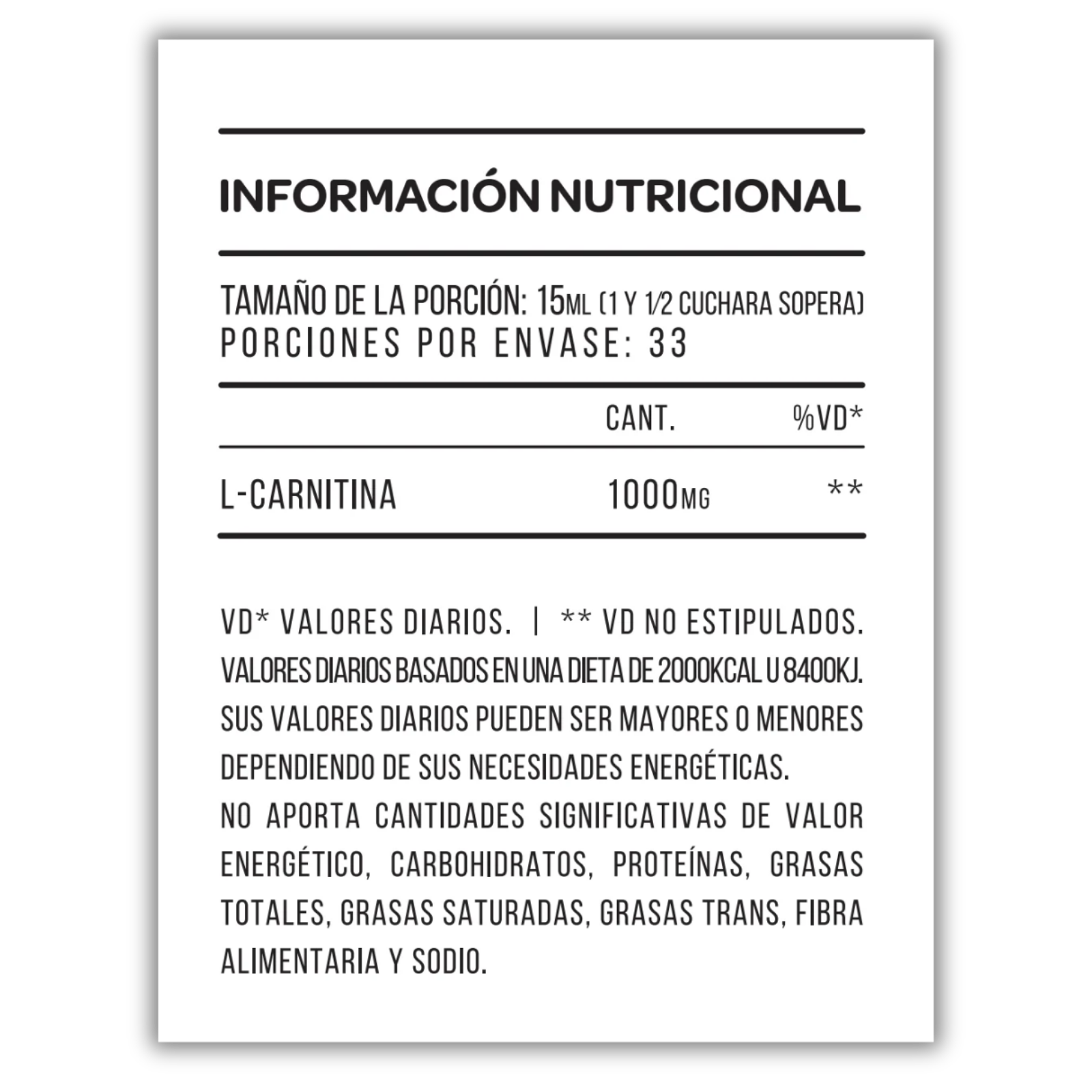 Agua, L-Carnitina, acidulantes, saborizantes, edulcorantes y conservantes.