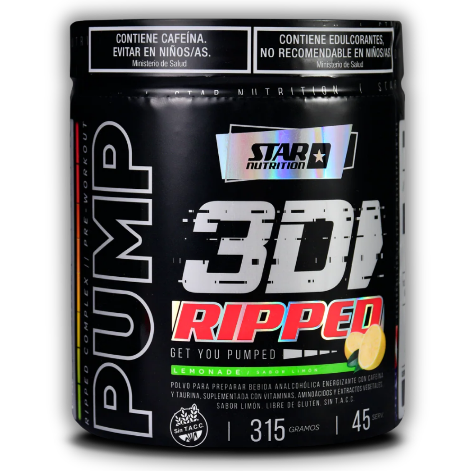 Star Nutrition Pump 3D Ripped Contiene cafeína. No recomendado para niños, embarazadas o en período de lactancia.
