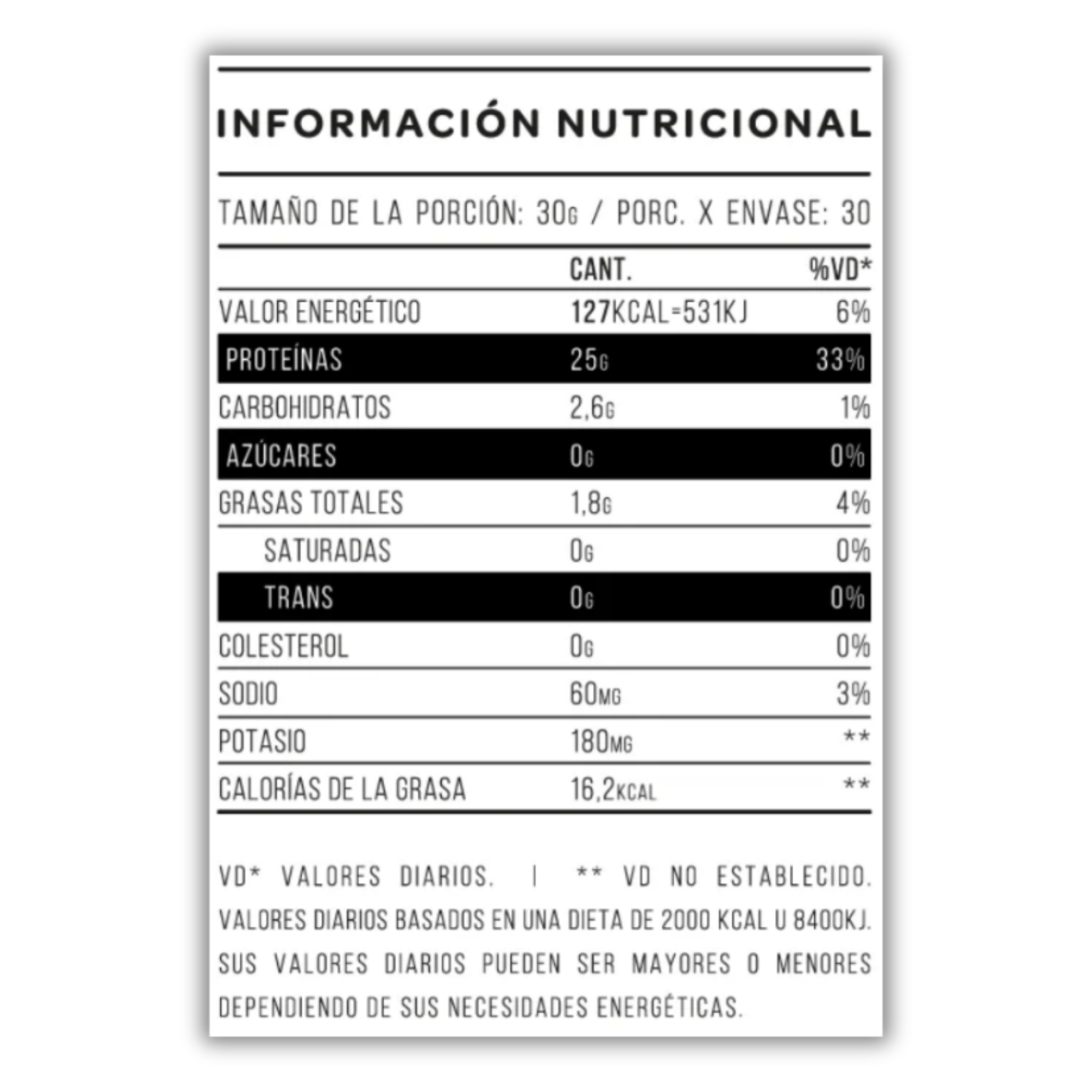 • Porciones por envase: 30 servicios